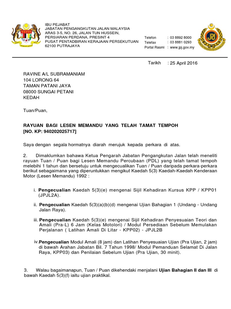 Surat Program My Lesen Oleh Jpj Malaysia Pdf Document
