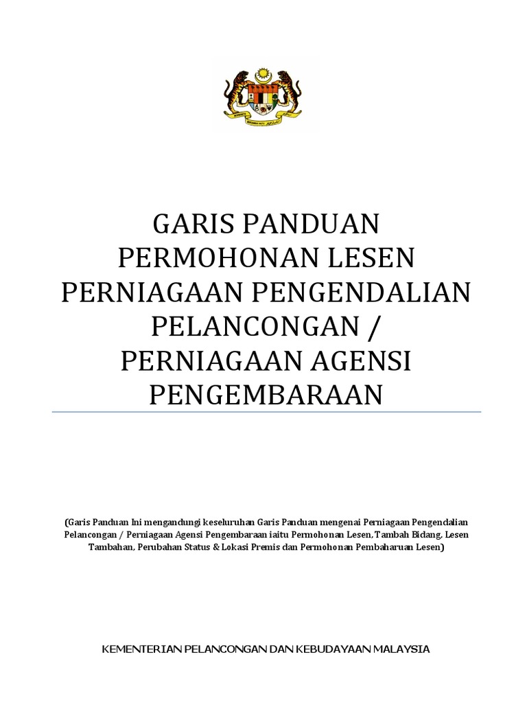 Garis Panduan Permohonan Lesen Perniagaan Pengendalian Pelancongan Dan Perniagan Agensi Pengembaraan Tobtab All0