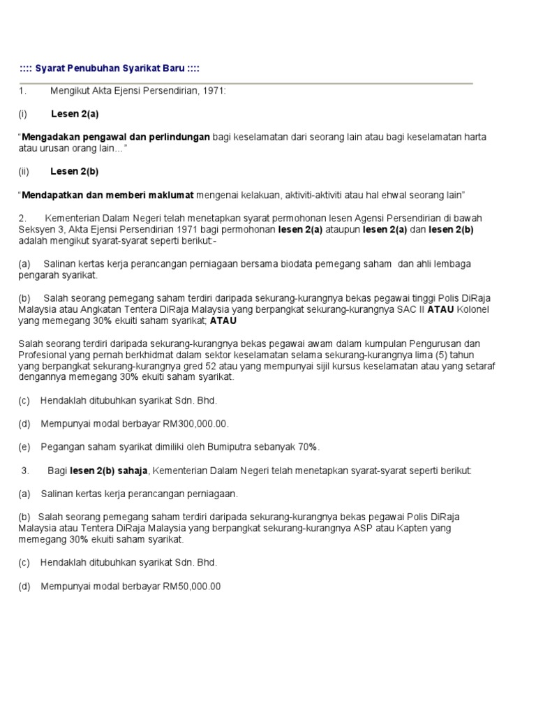 Syarat Penubuhan Syarikat Baru
