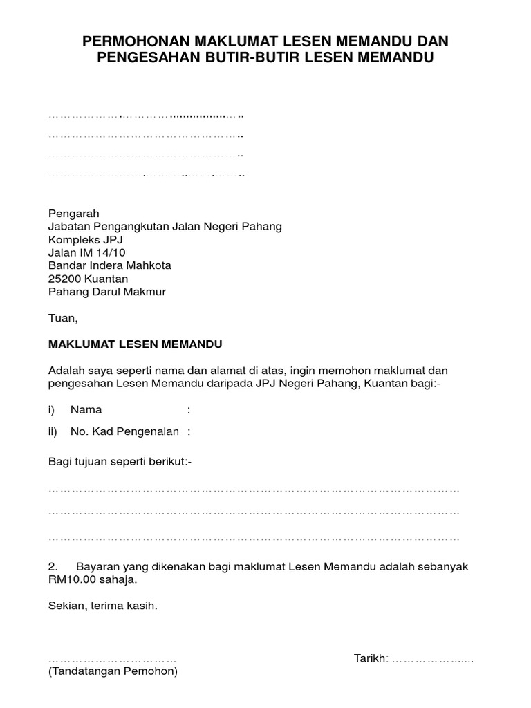 Borang Jpj Permohonan Maklumat Lesen Memandu Dan Pengesahan Butir Butir Lesen Memandu