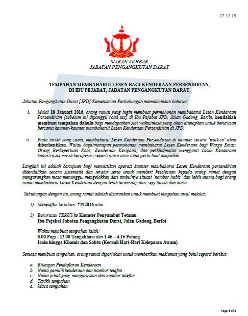 On April 1 1946 the Road Transport Department was set up to coordinate all aspects of transportation across the. CARA DAFTAR RENEW LESEN. BAYAR ROADTAX ONLINE.
