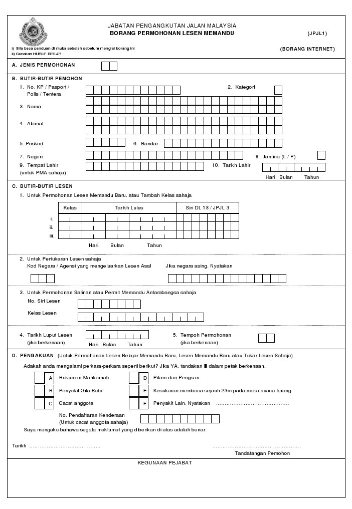Borang Permohonan Lesen Memandu Jpj L1 Pdf